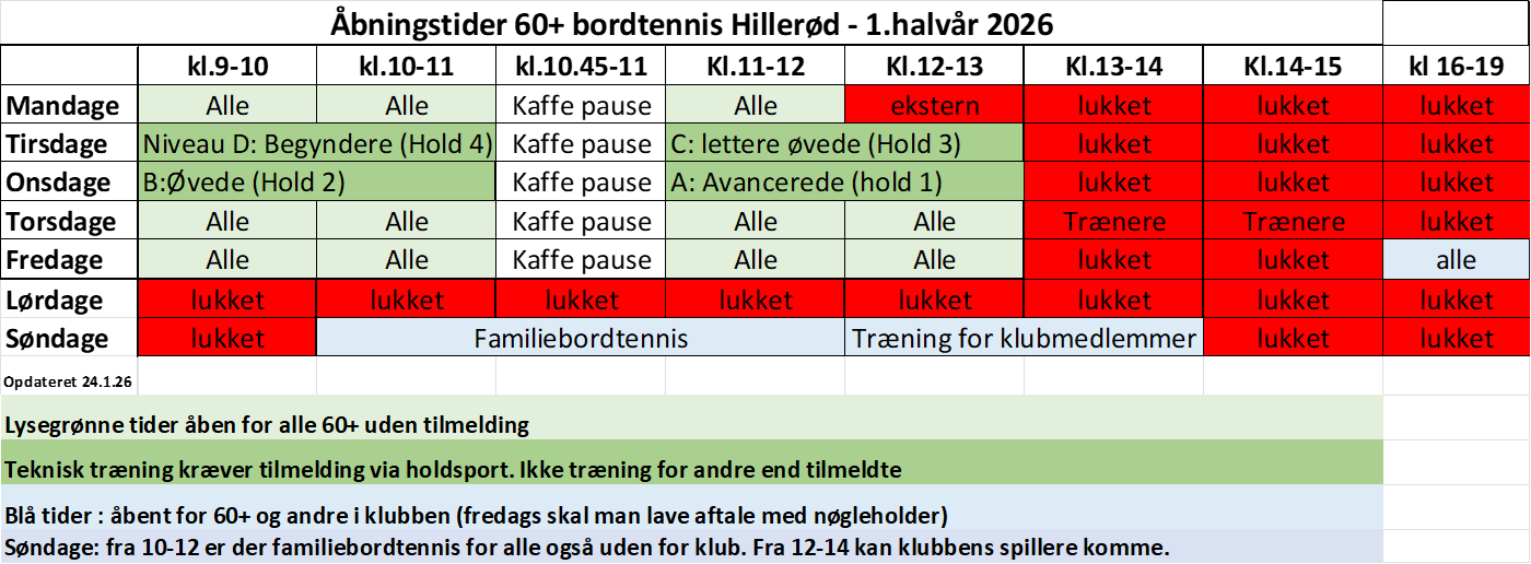 Link til trænerteamet her: Senior 60+ - HGI Bordtennis